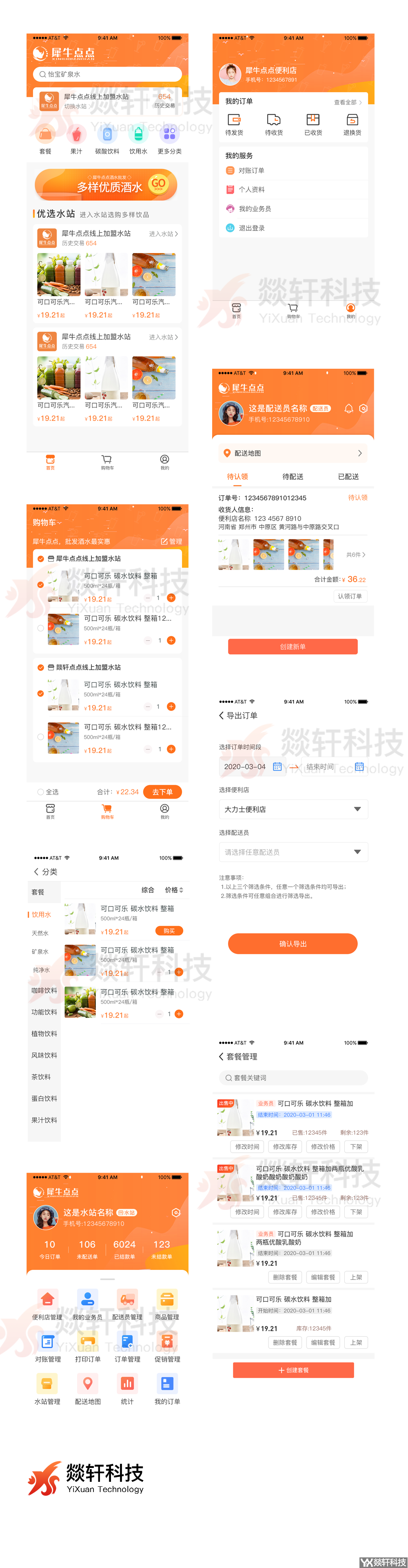 犀牛点点软件是app开发报价公司燚轩科技根据客户的需求,来定制开发一款多商户多商品批发商城的app软件。商户后台管理和前端管理,多种身份使用,便利店,水站,配送员,业务员等